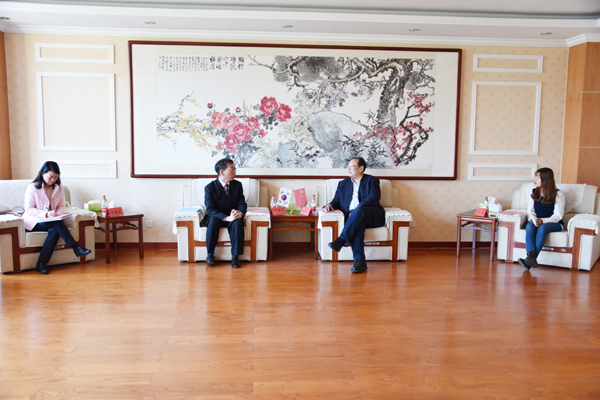 4月24日,韩国岭南大学国际学部部长朴宰宏一行4人对我校进行友好访问,校长冯滨鲁会见了客人。国际交流合作处负责人参加了会见。