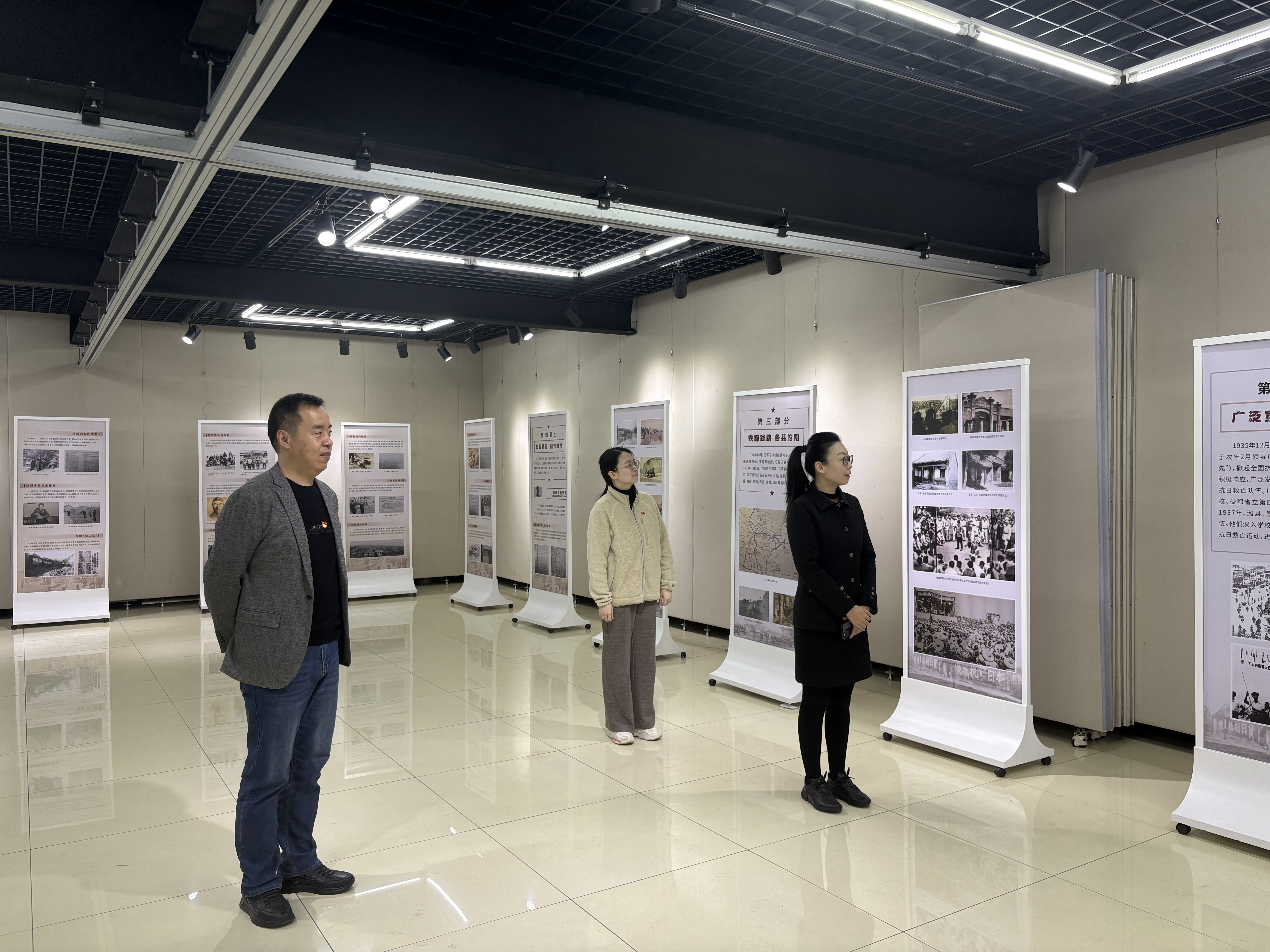 11月14日,国际交流合作处教师赴大学生创业孵化基地二楼美术馆参观“潍原烽火红”纪念抗战胜利80周年图片展。